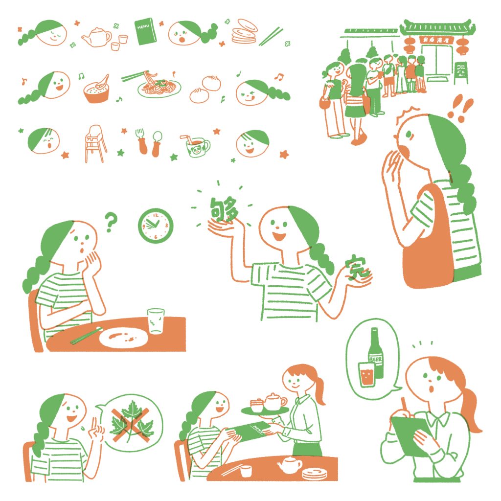 中国・深センで暮らす子育て世代の日本人を応援するボランティア団体「ハッピーマムズ深セン」が主催する『ハピマム中国語講座』テキストのカットイラストを担当しました。