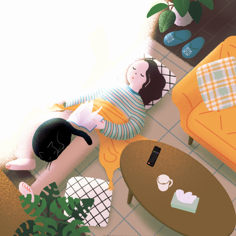 友人と季節ごとのイメージで6曲ずつセレクトしたプレイリストアルバムにジャケットイラストを描きました。
